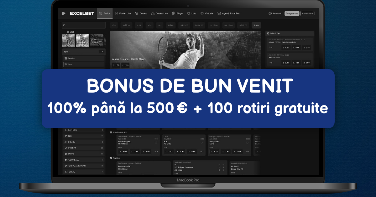 Excelbet include o secțiune de pariuri, acoperind cele mai populare sporturi, inclusiv fotbal, tenis și baschet. Noului utilizator i se oferă bonusuri pentru pariuri, cum ar fi free bets și cote majorate. Această diversitate de oferte facilitează o experiență de pariu captivantă și profitabilă.